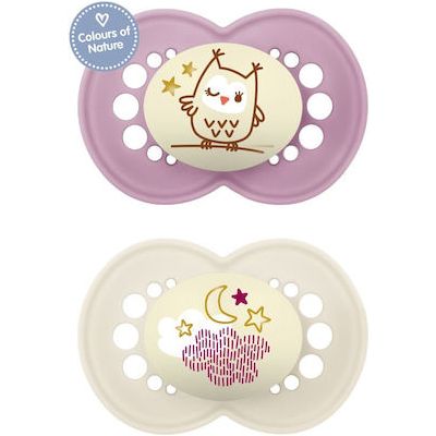 Mam Ορθοδοντικές Πιπίλες Σιλικόνης για 6-16 μηνών Night Νυκτός Κουκουβάγια - Σύννεφο Μωβ/ Κρεμ 2τμχ