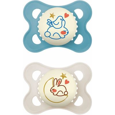 Mam Ορθοδοντικές Πιπίλες Σιλικόνης Μπεζ/ Μπλε Νυκτός με Θήκη για 2-6 μηνών 2τμχ