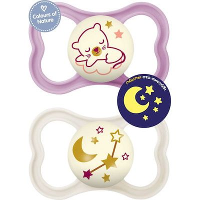 Mam Ορθοδοντικές Πιπίλες Σιλικόνης Νυκτός Air Night για 6-16 μηνών Τιγράκι / Αστεράκια Μωβ / Κρεμ 2τμχ
