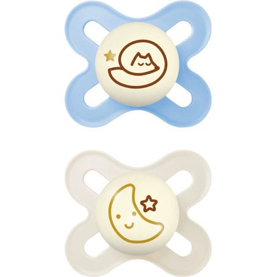 Mam Original Start Night Πιπίλα Σιλικόνης που Λάμπει στο Σκοτάδι Σιέλ-Κρεμ 0-2m, 2τμχ