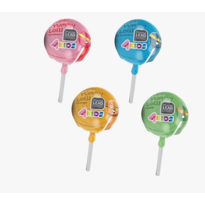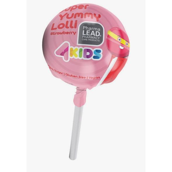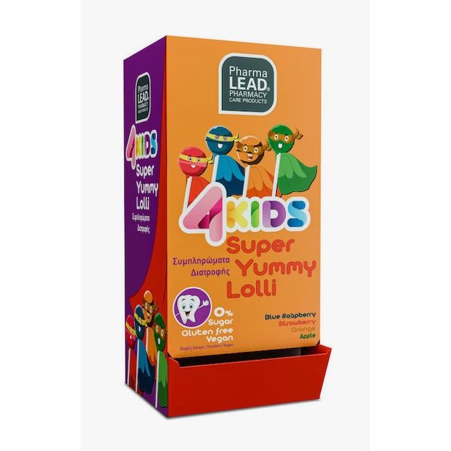 Παιδικό βιταμινούχο γλειφιτζούρι Pharmalead χωρίς ζάχαρη και γλουτένη. Συμπλήρωμα διατροφής σε τέσσερις διαφορετικές γεύσεις: μήλο, πορτοκάλι, φράουλα και βατόμουρο.