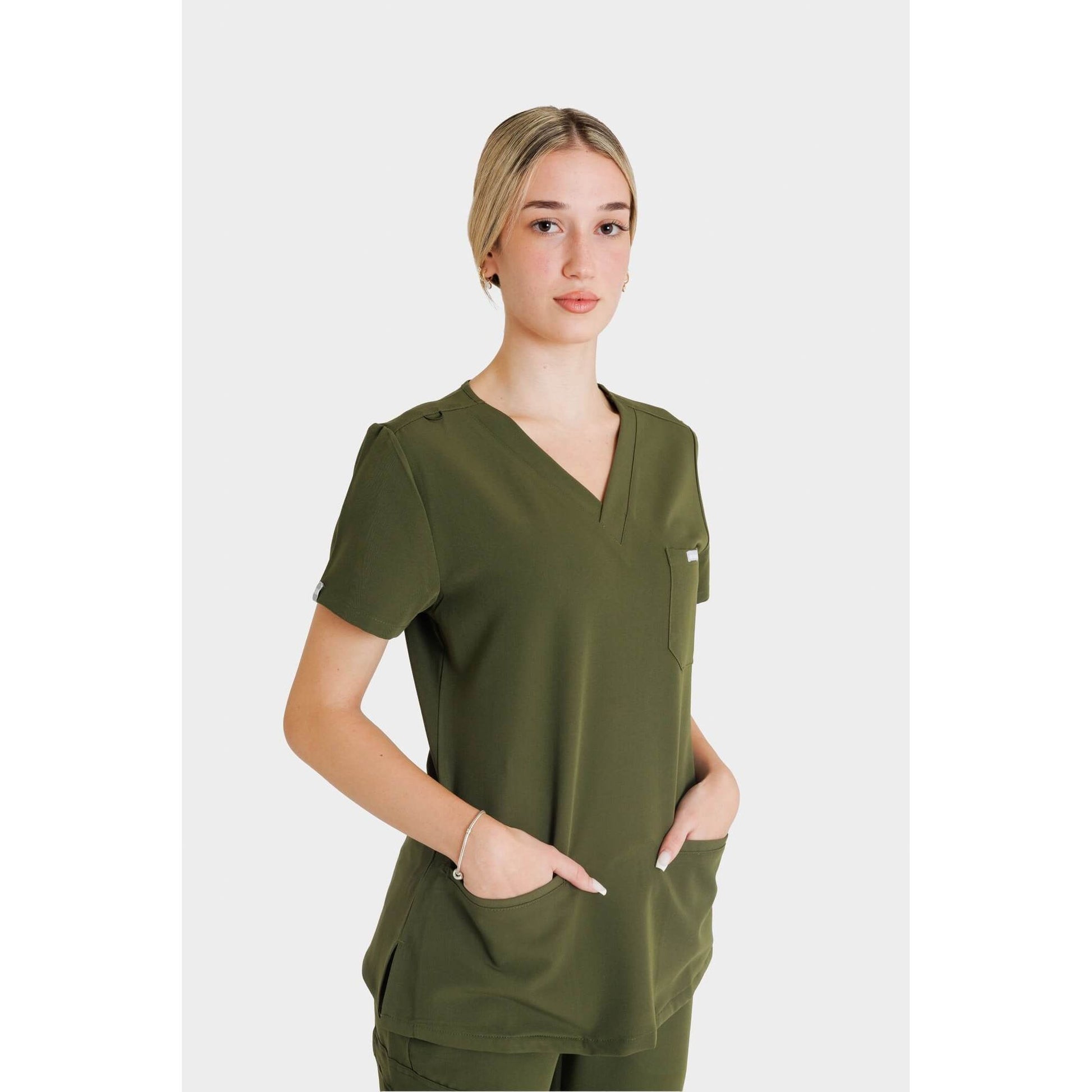 Κατασκευασμένη από τα πιο ποιοτικά υλικά, η λαδί γυναικεία scrub μπλούζα έχει σχεδιαστεί για να ανταποκρίνεται στις απαιτήσεις των επαγγελματιών, παρέχοντας άνεση και ανθεκτικότητα. Ο σχεδιασμός αυτής της ιατρικής μπλούζας είναι εργονομικός και μοντέρνος. Διαθέτει κλασική εφαρμογή με λαιμόκοψη V, παρέχοντας αρκετό χώρο αποθήκευσης & άνεση. Όσον αφορά τις μπλούζες scrub, το λαδί είναι ένα ιδιαίτερα δημοφιλές χρώμα για την πρακτικότητα και τη λειτουργικότητά του. Όχι μόνο κρύβει καλά τους πιθανούς λεκέδες, αλλά είναι επίσης εύκολο να συνδυαστεί με άλλα ρούχα, καθιστώντας το μια πρακτική και κομψή επιλογή για τους επαγγελματίες του τομέα της υγειονομικής περίθαλψης Δεν είστε σίγουροι για το νούμερο που πρέπει να επιλέξετε; Συμβουλευτείτε τον αναλυτικό οδηγό μεγεθών πατώντας εδώ.