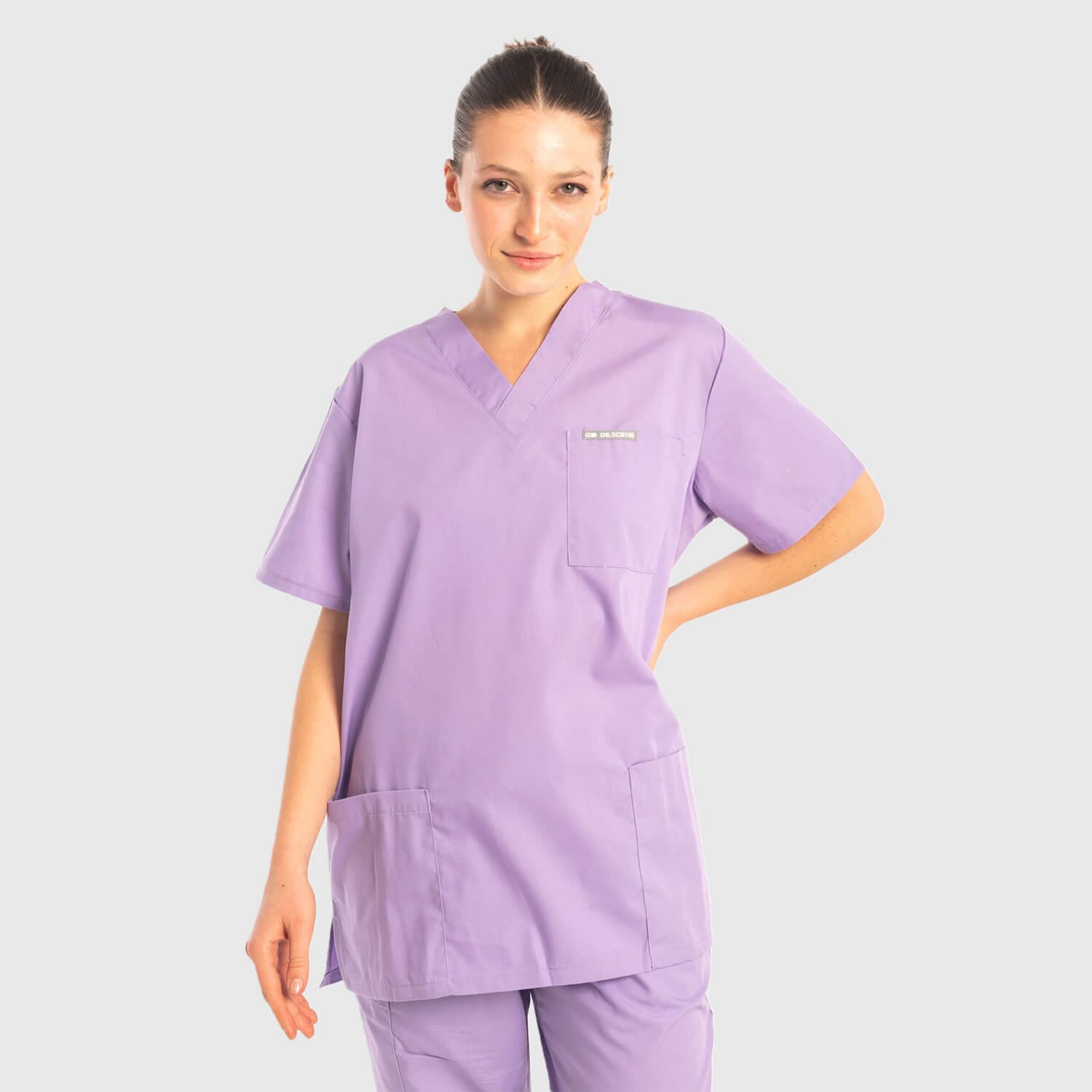 Αυτή η unisex νοσηλευτική μπλούζα λιλά είναι ο τέλειος συνδυασμός στυλ, άνεσης και λειτουργικότητας! Σχεδιασμένο για να ταιριάζει τόσο στους άνδρες όσο και στις γυναίκες, αποτελεί essential κομμάτι για κάθε επαγγελματία του υγειονομικού κλάδου. Κατασκευασμένο από ελαφρύ ύφασμα που αναπνέει, αυτό το μπλουζάκι προσφέρει απόλυτη άνεση, καθιστώντας το ιδανικό ακόμα και για τις πιο απαιτητικές ημέρες. Το λιλά χρώμα προσθέτει μια ευχάριστη πινελιά χρώματος στο εργασιακό περιβάλλον, ενώ ο σχεδιασμός unisex εξασφαλίζει συνοχή στην ομάδα σας Αυτή η μπλούζα όχι μόνο δείχνει υπέροχη, αλλά είναι επίσης εύκολη στη φροντίδα. Απλά ρίξτε τη στο πλυντήριο και το στεγνωτήριο και είστε έτοιμοι. Περισσότερα σχετικά με την φροντίδα των scrubs εδώ. Δεν είστε σίγουροι για το νούμερο που πρέπει να επιλέξετε; Συμβουλευτείτε τον αναλυτικό οδηγό μεγεθών πατώντας εδώ. Διαστάσεις μοντέλου: