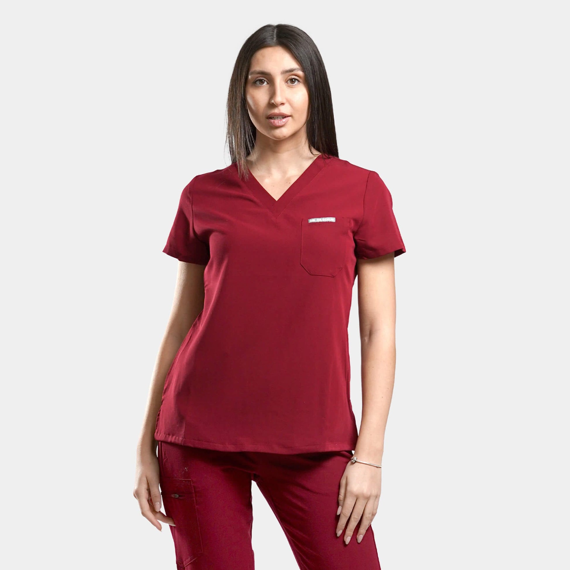 Κατασκευασμένη από τα πιο ποιοτικά υλικά, η γυναικεία scrub μπλούζα μπορντό έχει σχεδιαστεί για να ανταποκρίνεται στις απαιτήσεις των επαγγελματιών, παρέχοντας άνεση και ανθεκτικότητα. Ο σχεδιασμός αυτής της ιατρικής μπλούζας είναι εργονομικός και μοντέρνος. Διαθέτει κλασική εφαρμογή με λαιμόκοψη V, παρέχοντας αρκετό χώρο αποθήκευσης & άνεση. Είτε θέλετε να δημιουργήσετε μια ζεστή και φιλόξενη ατμόσφαιρα είτε μια κομψή και εκλεπτυσμένη εμφάνιση, το μπορντό είναι η τέλεια επιλογή χρώματος. Δεν είστε σίγουροι για το νούμερο που πρέπει να επιλέξετε; Συμβουλευτείτε τον αναλυτικό οδηγό μεγεθών πατώντας εδώ. Διαστάσεις μοντέλου: