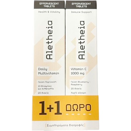 Vican Aletheia Daily Multivitamin Πολυβιταμίνη Γεύση Πορτοκάλι 20 Αναβράζοντα Δισκία & Vitamic C 1000mg Γεύση Blueberry-Raspberry 20 Αναβράζοντα Δισκία για Ενίσχυση του Ανοσοποιητικού 1000mg